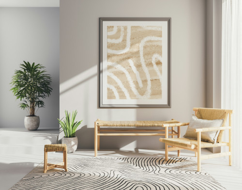Et minimalistisk maleri fungerer bedst, når det får plads til at ånde. Hæng det på en væg, hvor der ikke er for mange forstyrrende elementer omkring – gerne med lidt afstand til møbler og andre billeder.